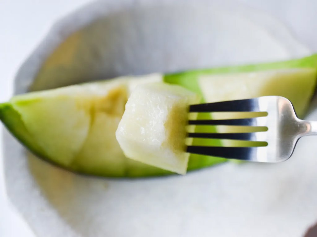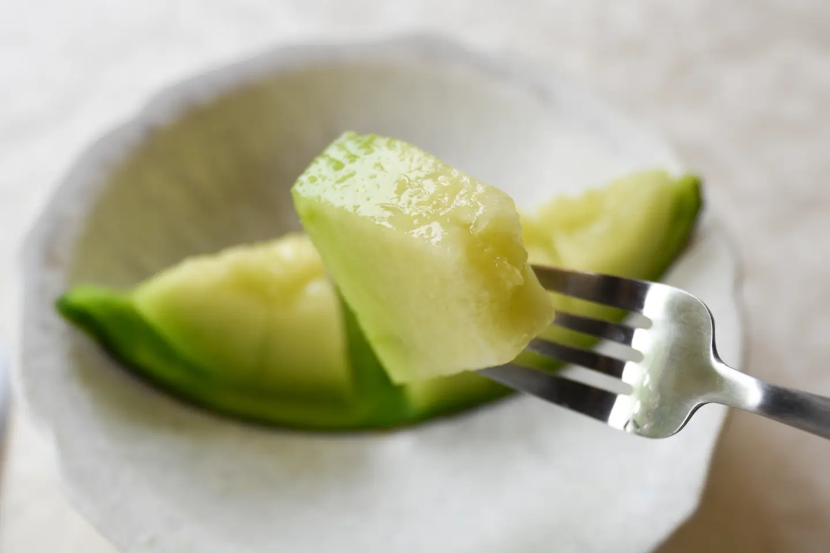 【アンデスメロン2玉】アンデスメロンの果皮は緑色ですが果肉は黄緑色で甘味が強く、マスクメロンに似た風味があり、熟した果肉はジューシーでとろけるような口当たりです。