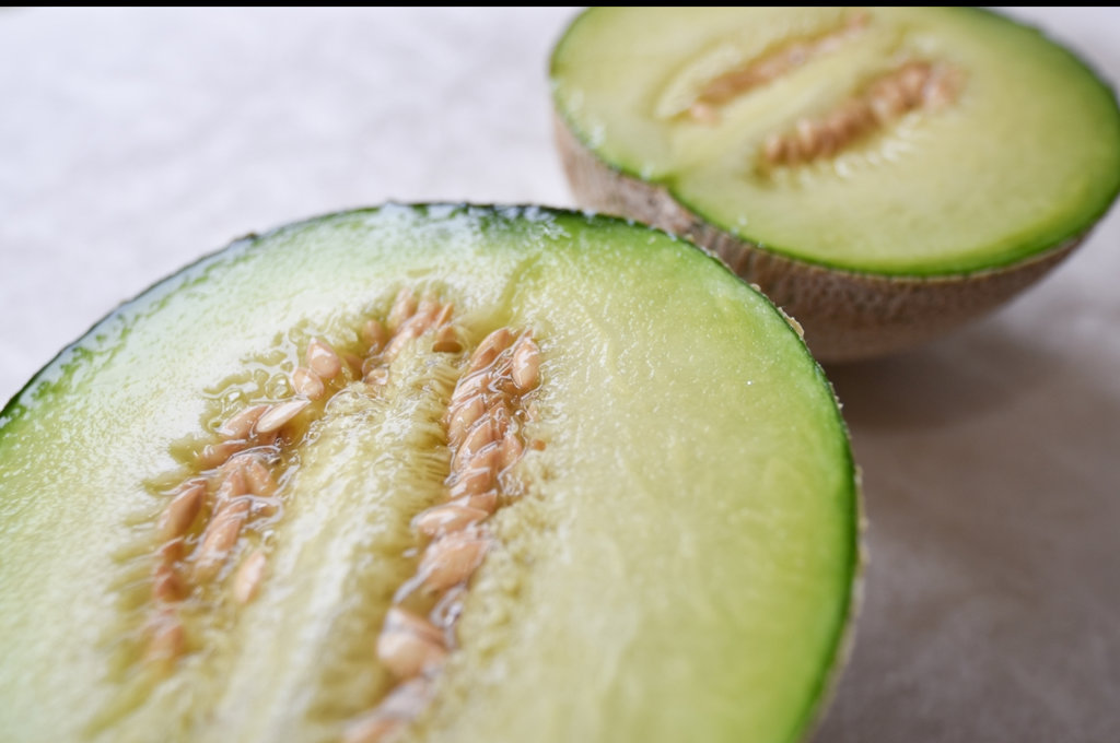 レノンメロンの果皮は赤肉で、他の赤肉メロンより皮が薄く、中身が崩れにく!ドリップが少ないメロンです。熟した果肉は、甘くら滑らかな口当たりです。