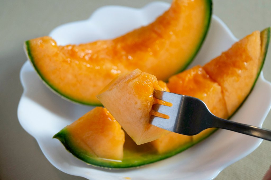 レノンメロンの果皮は赤肉で、他の赤肉メロンより皮が薄く、中身が崩れにく!ドリップが少ないメロンです。熟した果肉は、甘くら滑らかな口当たりです。